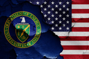 Flags Of Department Of Energy And Usa Painted On Cracked Wall